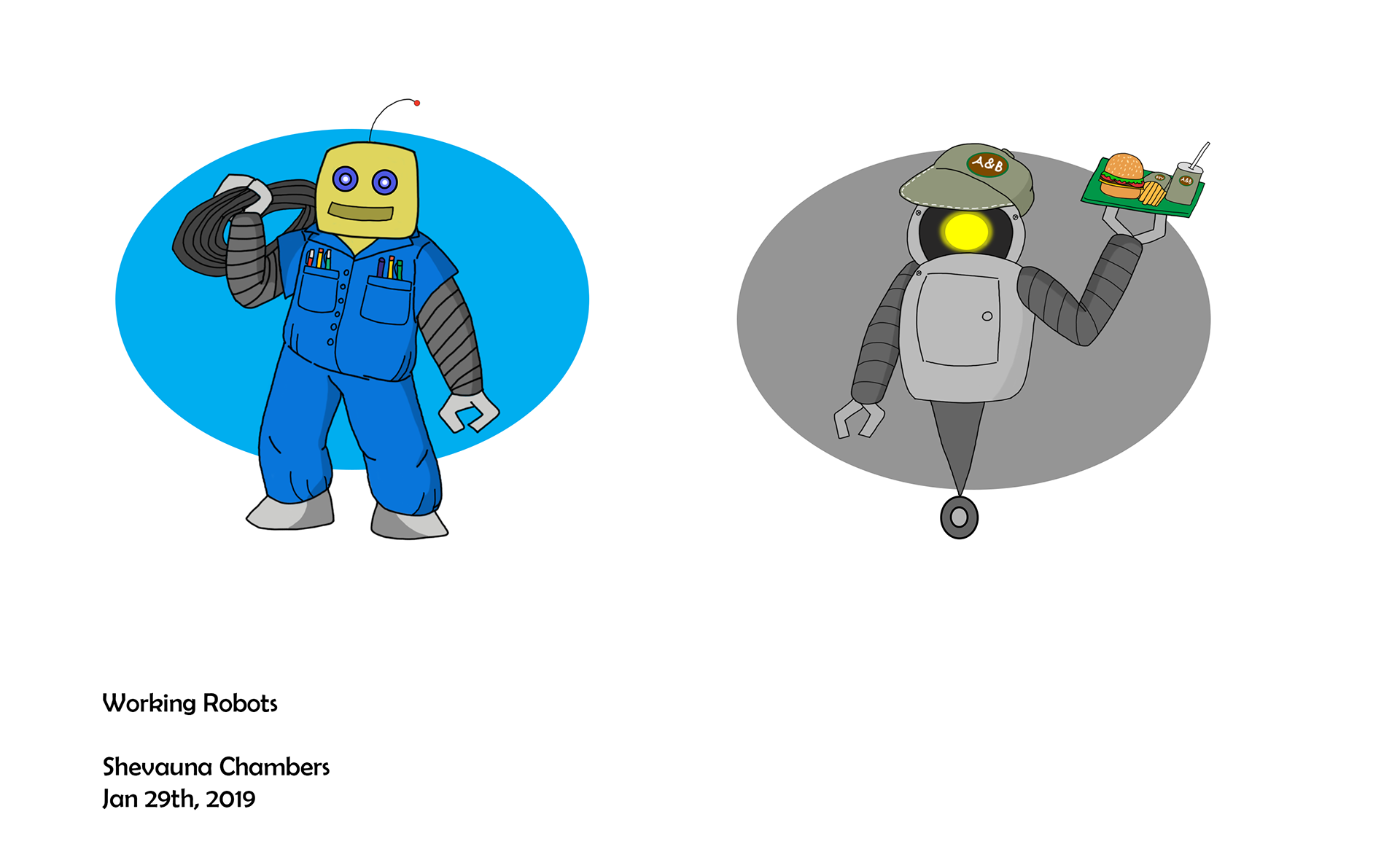 Inspired by an article that articulately describes the possible future of robots taking over industrial jobs, these spot illustrations represent what a future of working robots could look like.